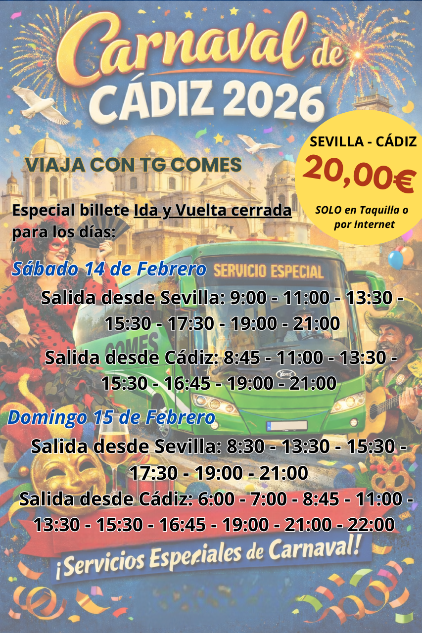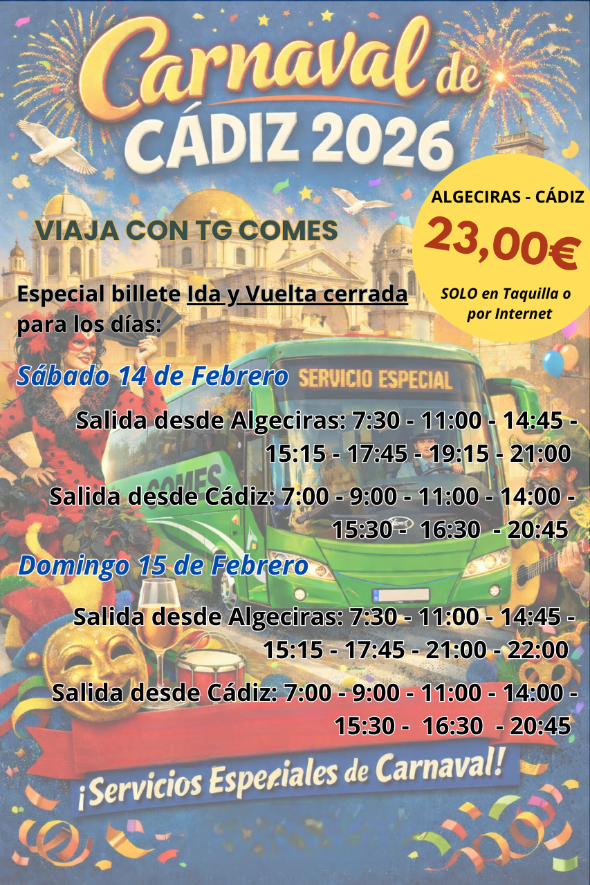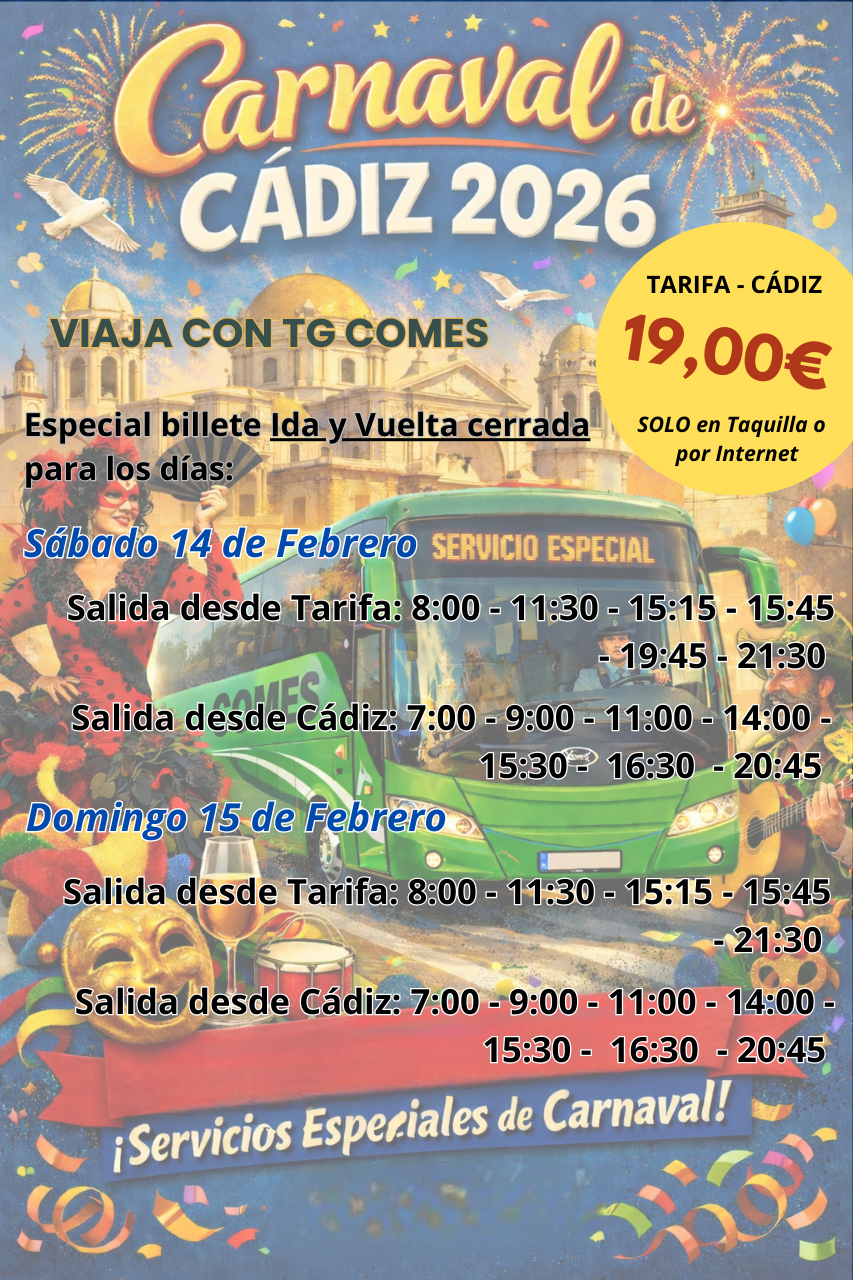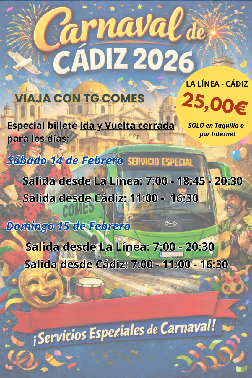 Los billetes con la «Promoción Ida y Vuelta Especial Carnaval» ya pueden adquirirse a través de esta misma página web y en taquilla. No se venderán en el autobús.